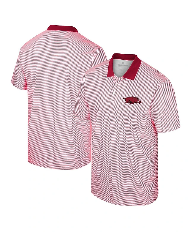 Men's Colosseum White, Cardinal Arkansas Razorbacks Print Stripe Polo Shirt