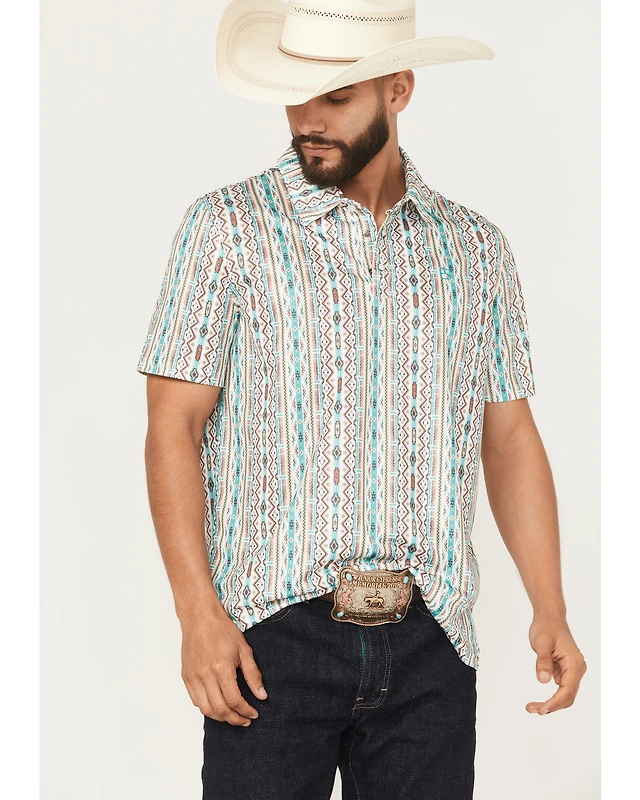 Spring + Mercer Men's Cable Knit Johnny Collar Short Sleeve Sweater Polo