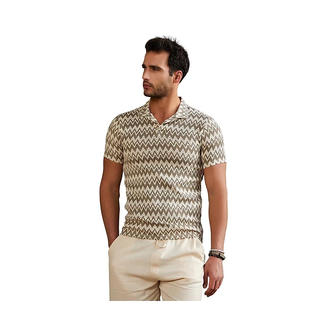 Campus Sutra Men's French Beige & Off White Zig-Zag Knit Polo T-Shirt