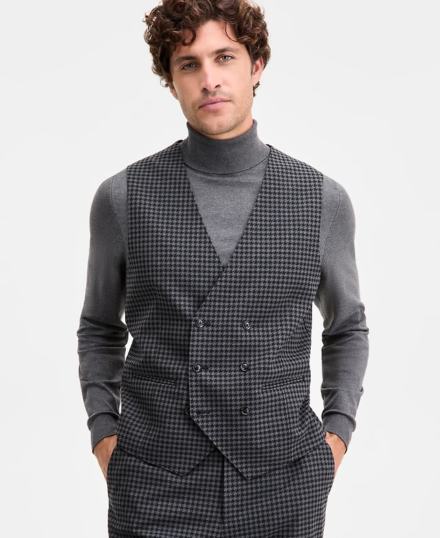 Tayion Collection Men's Classic-Fit Houndstooth Double-Breasted Suit Separate Vest