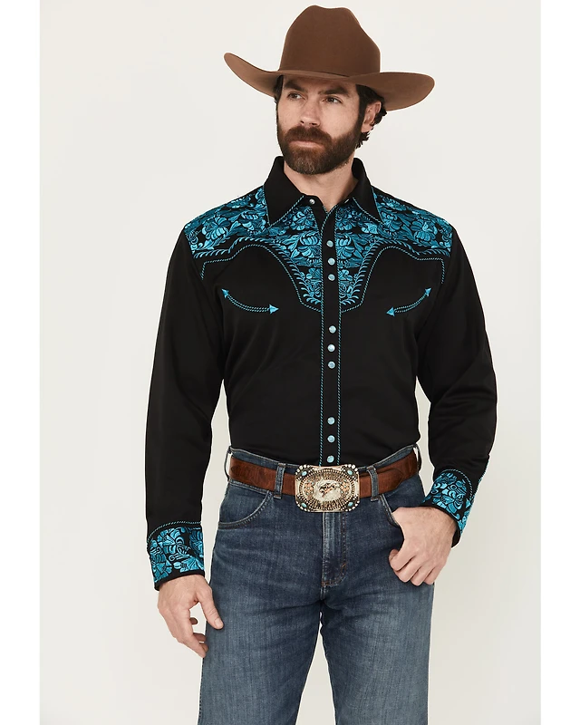 Scully Men's Floral Embroidered Retro Long Sleeve Snap Western Shirt