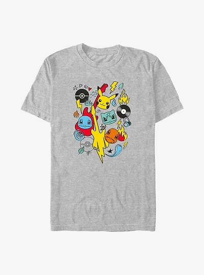 Pokemon Pikachu Squirtle Bulbasaur Charmander Doodle Big & Tall T-Shirt