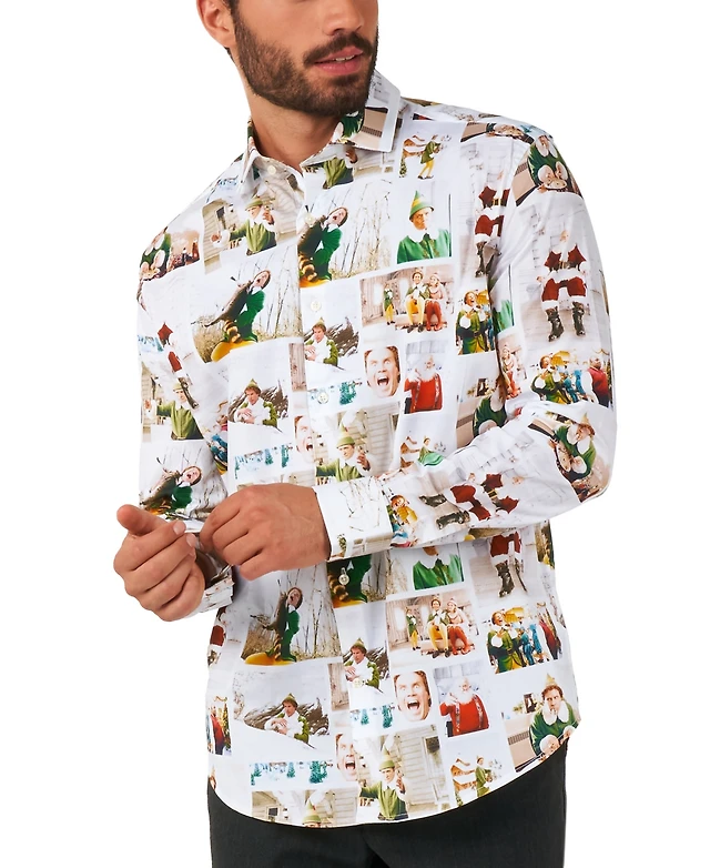 La Pop Art Men's Meowy Christmas Tree Word Long Sleeve T-Shirt