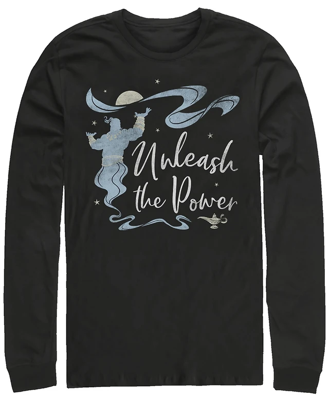 Disney Men's Aladdin Live Action Genie Unleash the Power Portrait, Long Sleeve T-Shirt