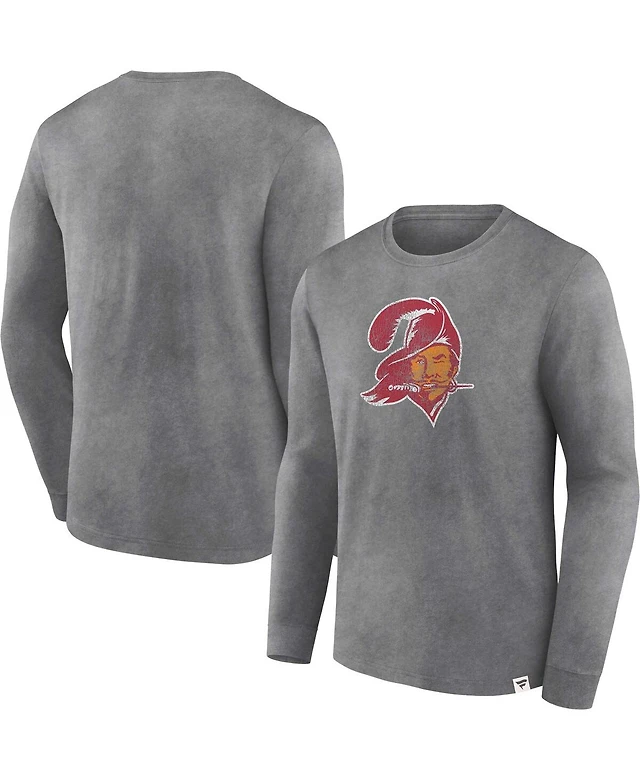 Men's Fanatics Heather Charcoal Distressed Tampa Bay Buccaneers Washed Primary Long Sleeve T-shirt