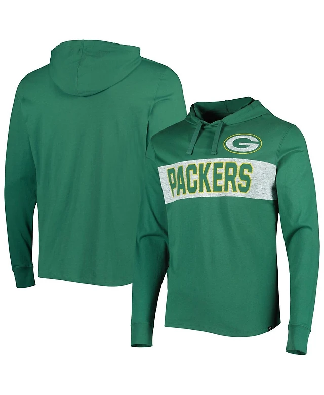 Men's '47 Brand Green Distressed Bay Packers Field Franklin Hooded Long Sleeve T-shirt