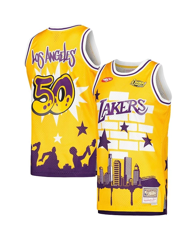 Men's Mitchell & Ness x Tats Cru Gold Los Angeles Lakers Hardwood Classics Fashion Jersey