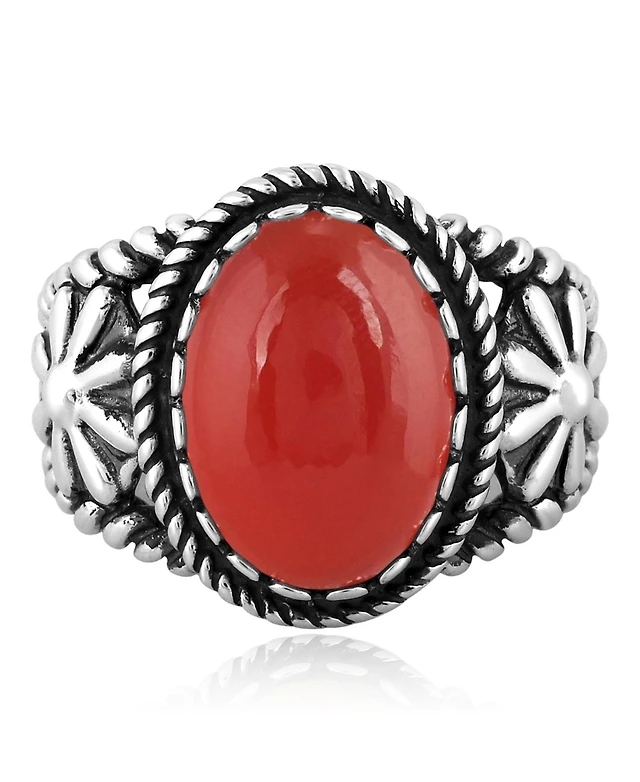 American West Jewelry Sterling Silver Red Onyx Concha Flower Design Ring