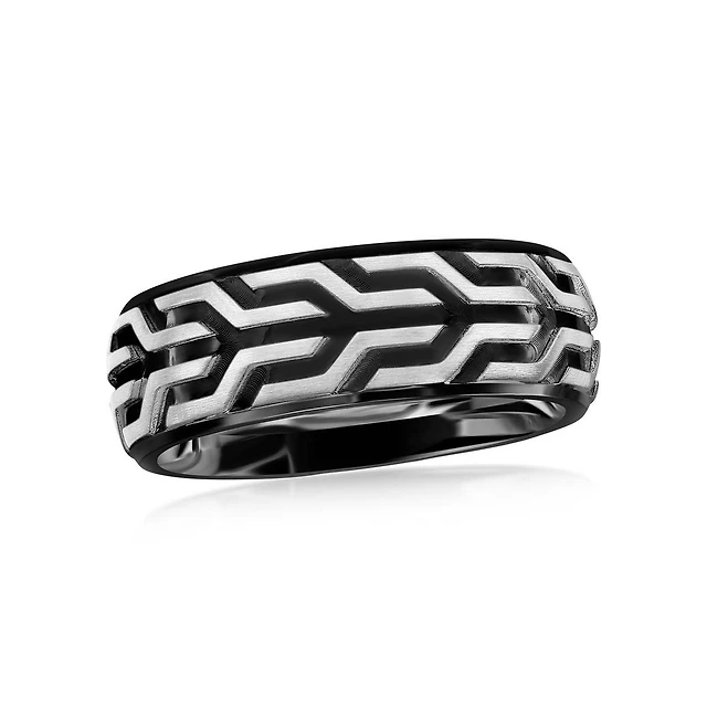 Men's Engraved Two-Tone Wedding Band Sterling Silver & Black Rhodium-Plate