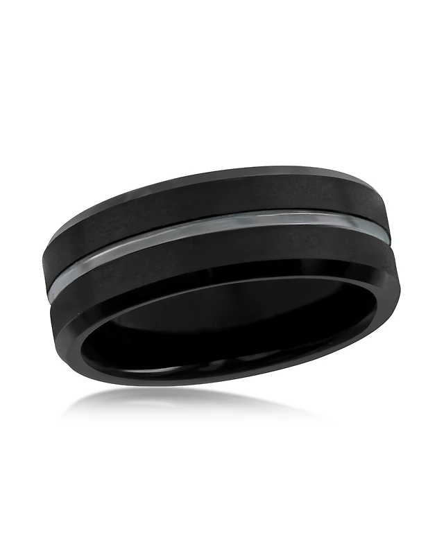 Now + Forever Men's Grooved Wedding Band Black & White Titanium 8mm