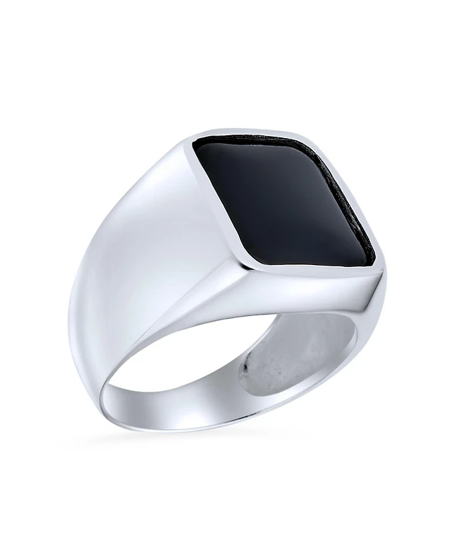 Bling Jewelry Brick Accent Statement Rectangle Natural Black Onyx Signet Ring