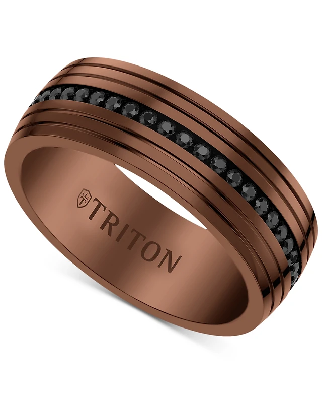Triton Men's Black Sapphire Low Dome Comfort Fit Wedding Band (1-1/6 ct. t.w.) Brown & Tungsten
