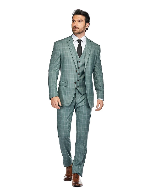 Stacy Adams Men's Glen Plaid Hybrid-Fit 3pc Notch Lapel Suit Set, Jacket Vest and Pants