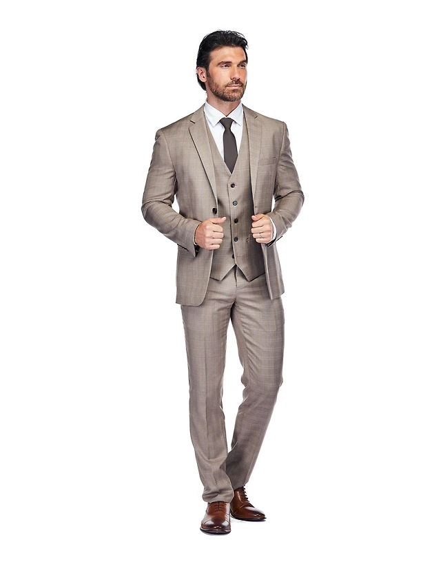 Gino Vitale Men's 2 Piece Slim Fit Brown Check Double Breasted Suit