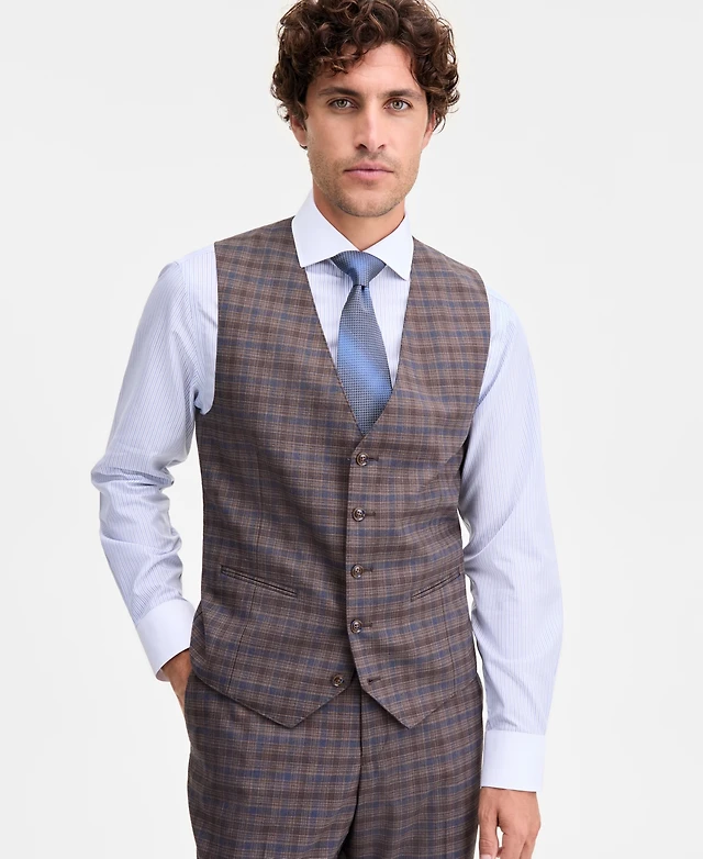Bar Iii Men's Slim-Fit Green & Burgundy Plaid Suit Separate Vest, Macy's Exclusive
