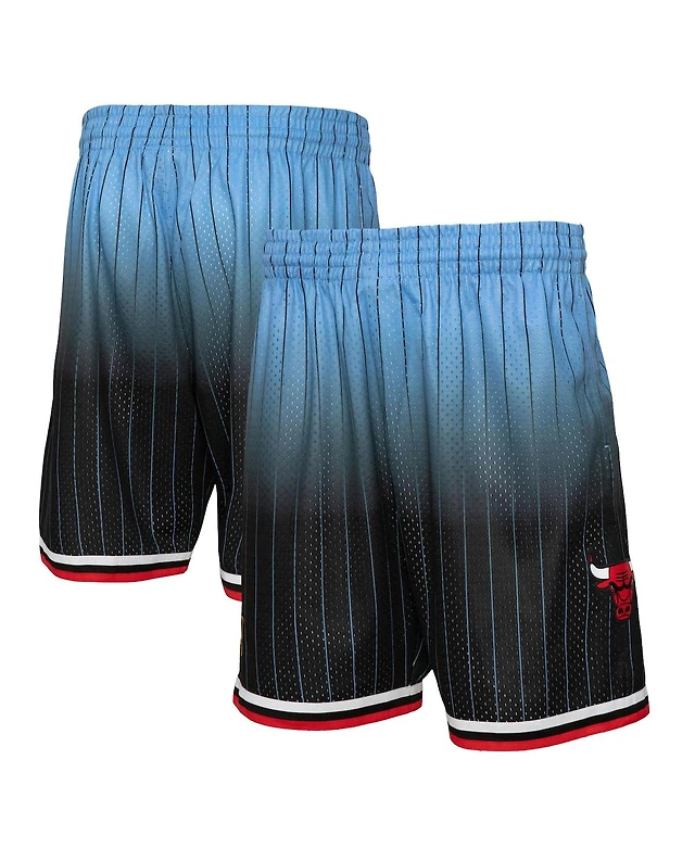 Men's Mitchell & Ness Black and Light Blue Chicago Bulls 1995/96 Hardwood Classics Fadeaway Reload 3.0 Swingman Shorts