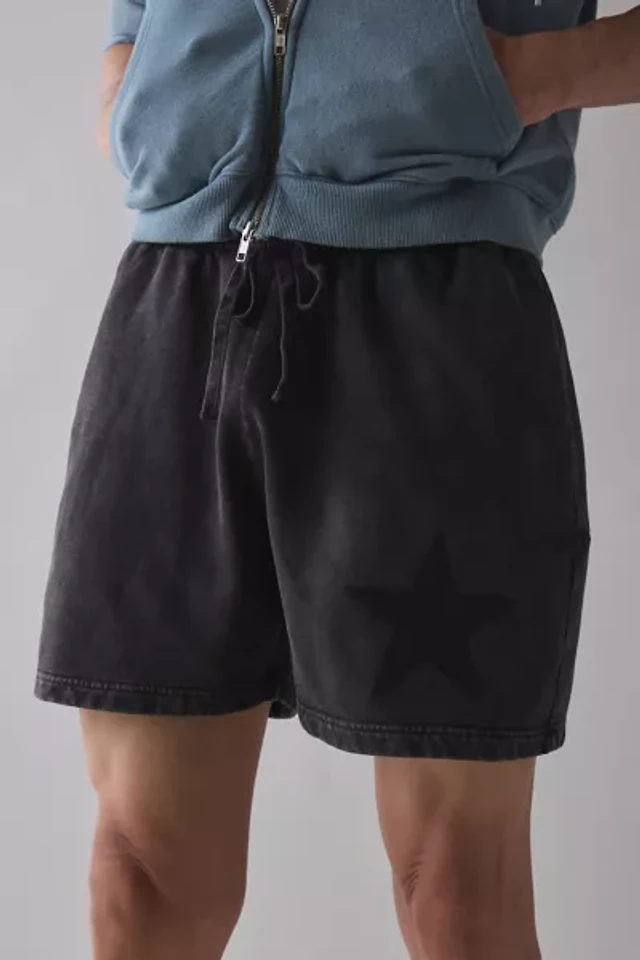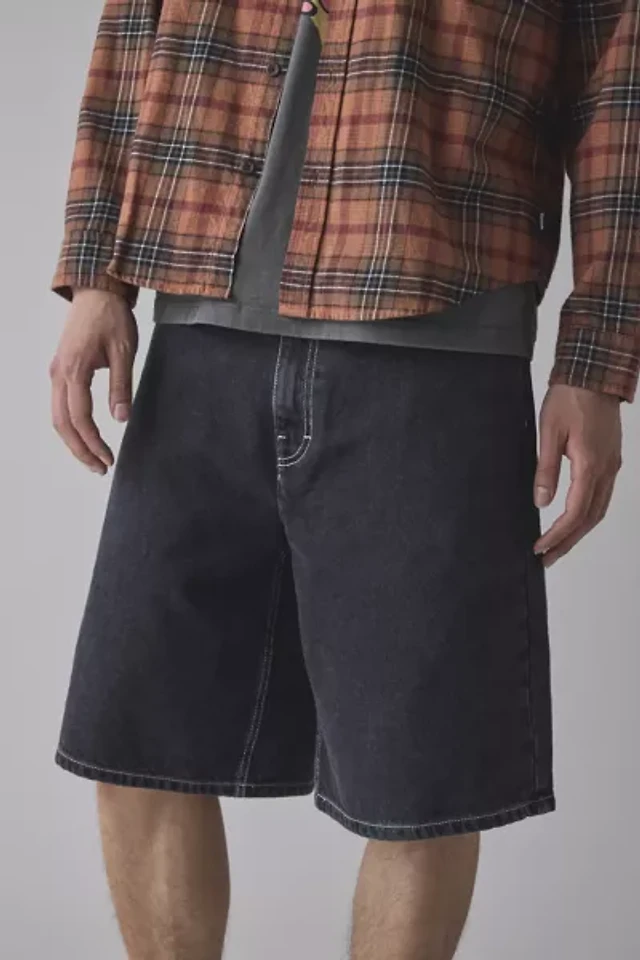 Washed Black Cat Graphic Super Baggy Denim Shorts