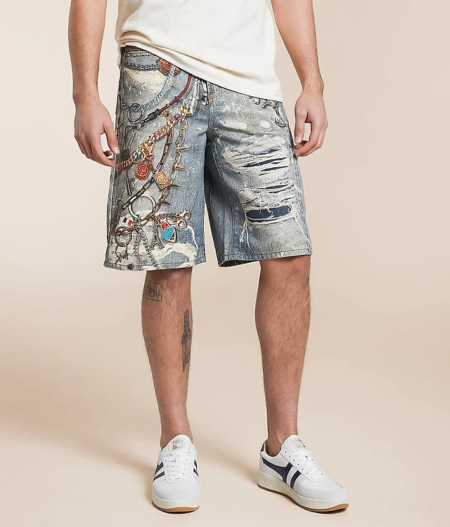 Taz Graphic Medium Wash Super Baggy Denim Shorts
