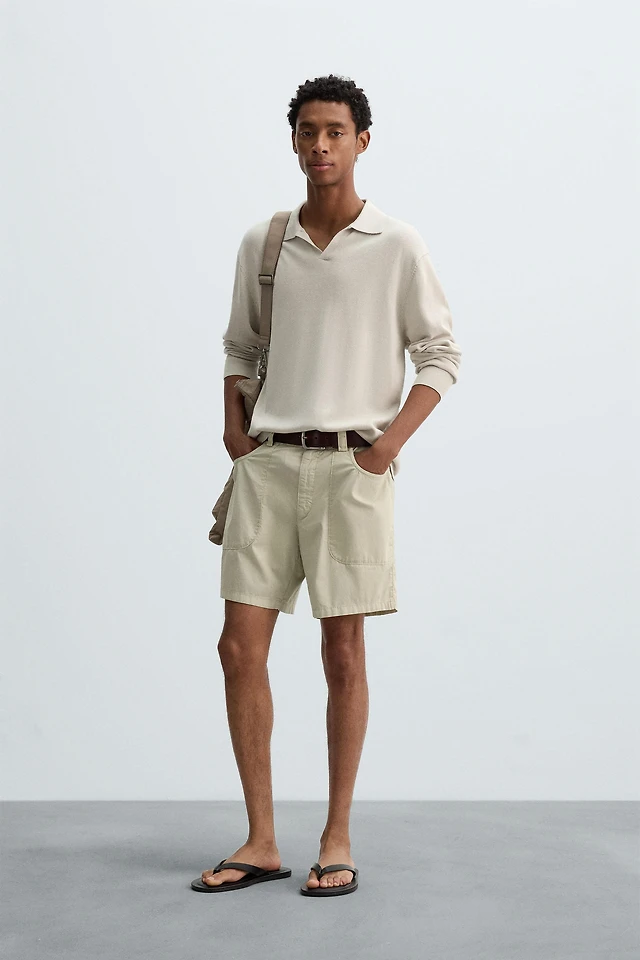 WeSC Olive Pachira Linen Utility Cargo Shorts