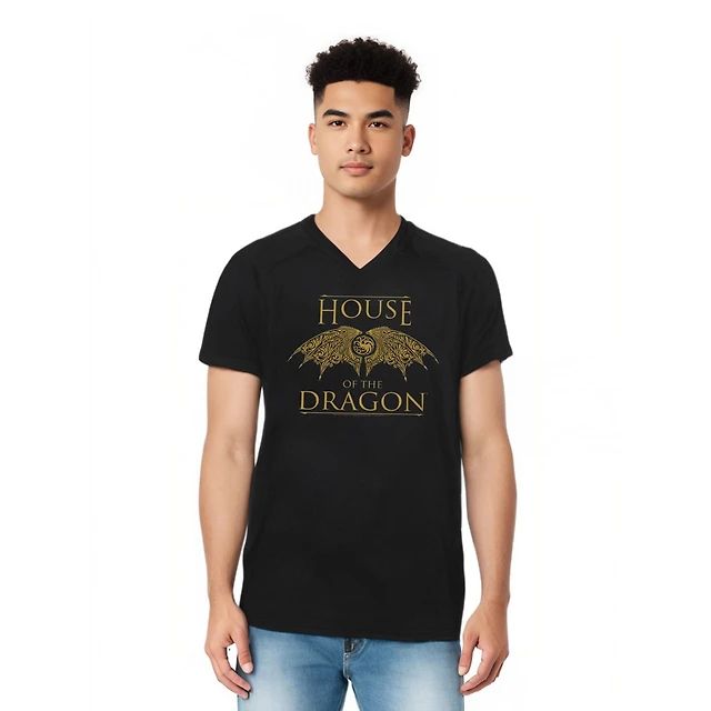 House Of The Dragon Men's Hod Illustration Short Sleeve Adult V Neck Premium Cotton Tee / T-Shirt