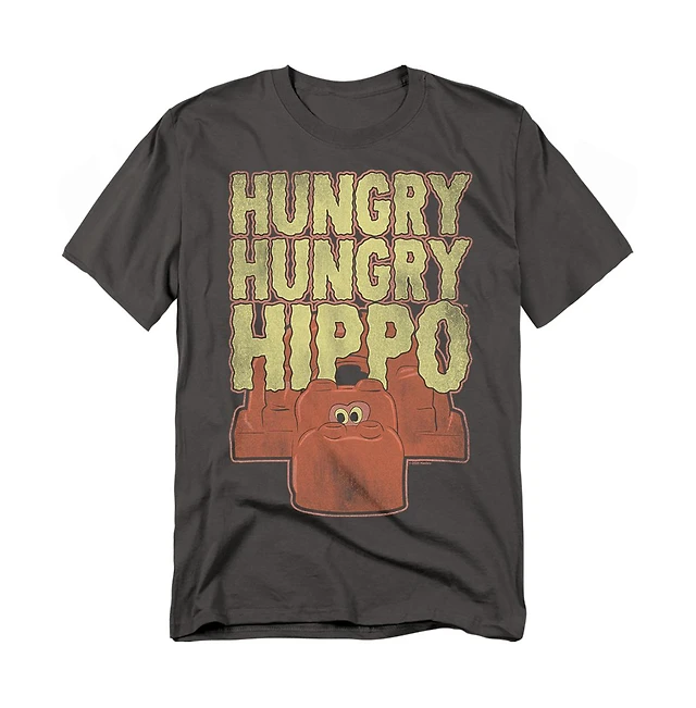 Logovision Men's Hungry Hippos Wavy Logo with Big Red Hippo T Shirt