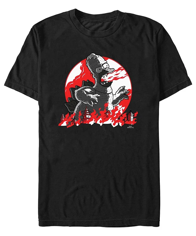Fifth Sun Men's The Simpsons Red Moon Godzilla Homer Short Sleeves T-shirt