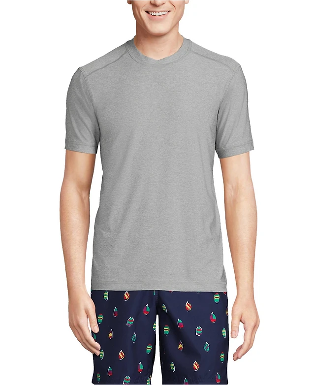 Lands' End Men's SunShade Upf 50 Short Sleeve Swim Tee Cooling Rash Guard