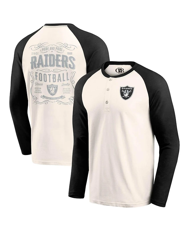 Fanatics Men's Cream/Black Las Vegas Raiders Raglan Henley T-Shirt