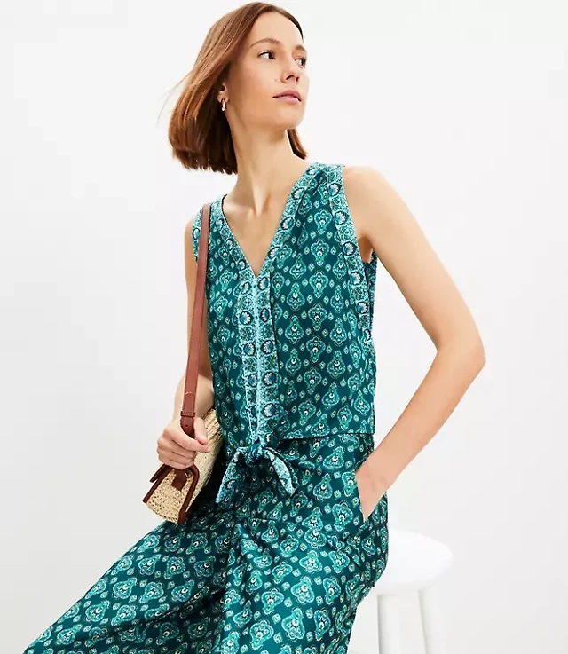 Petite Bouquet Tie Neck Mixed Media Shell