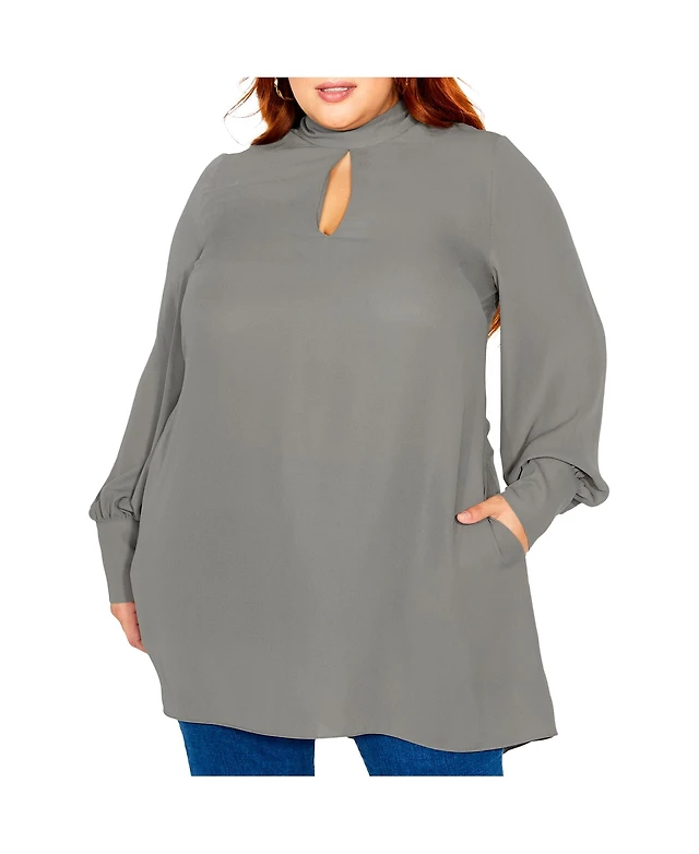 City Chic Plus Neck Tie Tunic Top