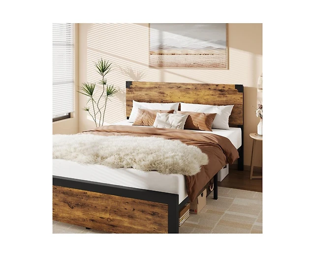 gaomon Queen Size Platform Bed Frame with Rustic Vintage Wood Headboard, Mattress Foundation Metal Slats Support, No Box Spring Needed, Brown