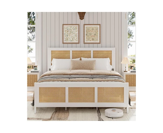 gaomon Twin/Full/Queen/King Size Bed Frame With Rattan Headboard And Footboard Rattan Platform Bed Frame, Mattress Foundation, Noise-Free, No Box Spri