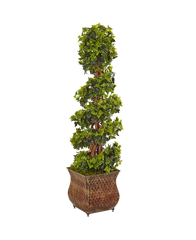 Nearly Natural 4' English Ivy Spiral Artificial Tree in Metal Planter, Uv Resistant
