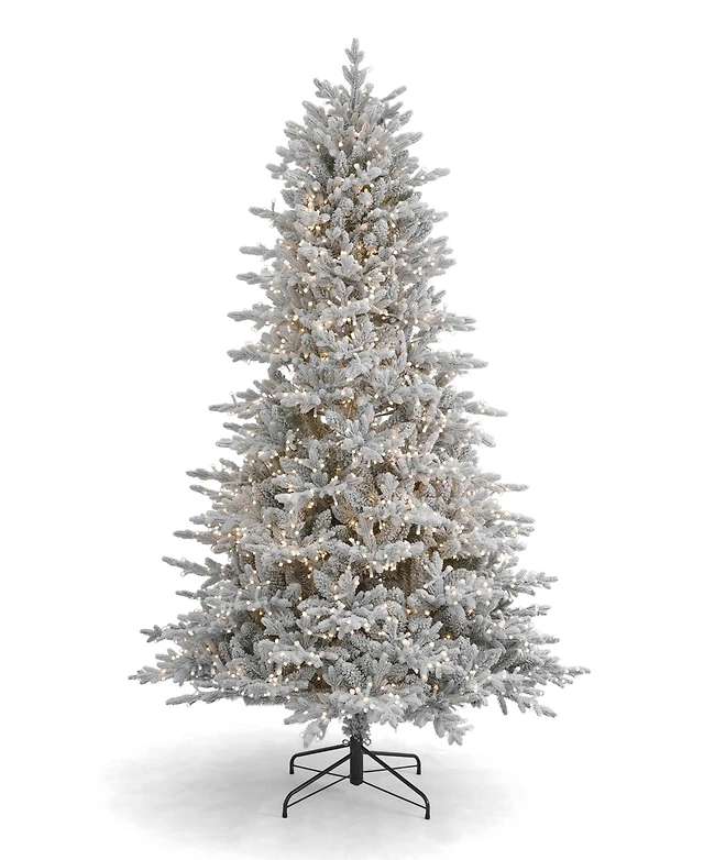 Seasonal Dandan Flocked Pine 7.5' Flocked Pe Mixed Pvc Tree with Metal Base, 3936 Tips, 2200 Lights, Ez-Connect, Remote, Storage Bag