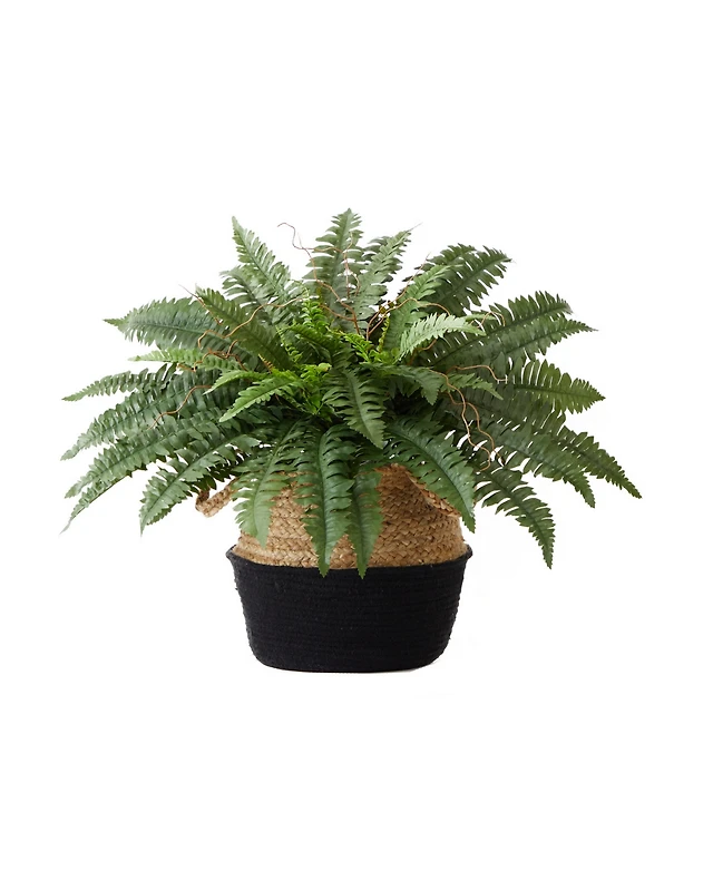 Nearly Natural 23" Artificial Boston Fern Plant with Handmade Jute Cotton Basket Diy Kit