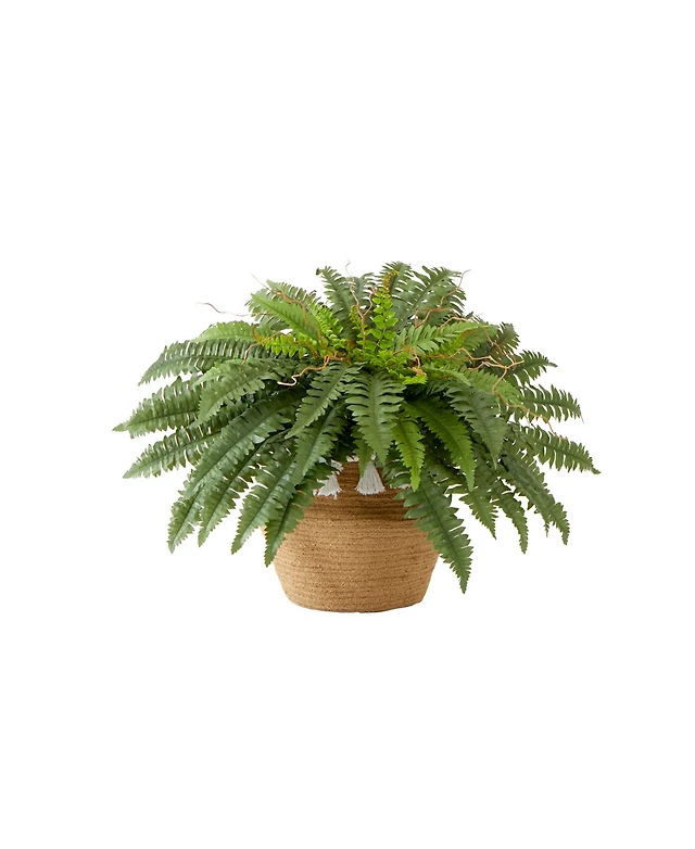 Nearly Natural 23"Artificial Boston Fern Plant in Handmade Jute Cotton Basket with Tassels Diy Kit