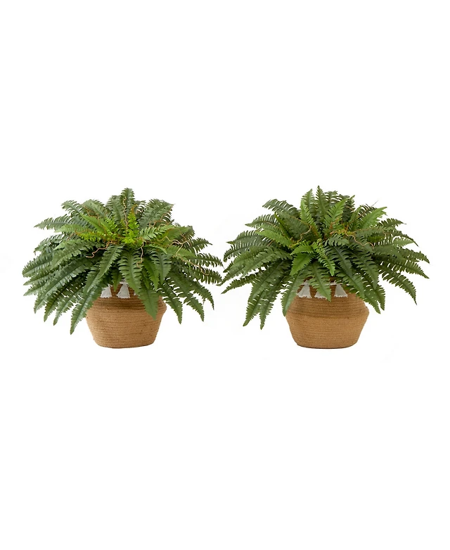 Nearly Natural 23" Artificial Boston Fern Plant with Handmade Jute Cotton Basket with Tassels Diy Kit Set of 2