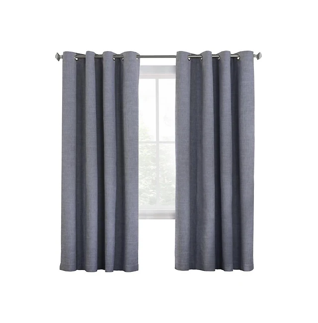 Half Price Drapes Voyager Blue Faux Linen Hotel Blackout Curtain