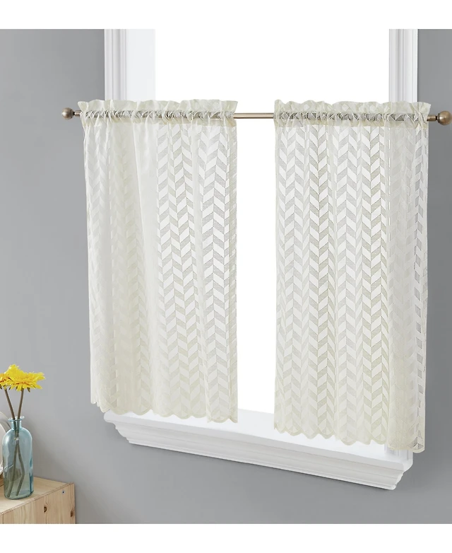 Hlc.Me Herringbone Lace Sheer Kitchen Cafe Curtain Tiers For Small Windows Bathroom