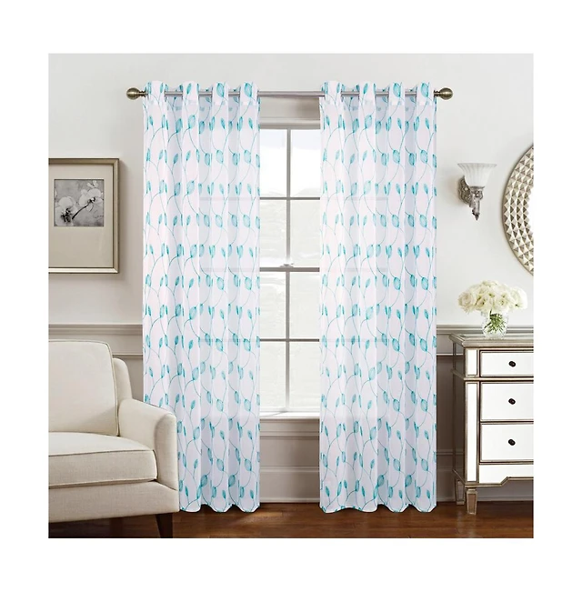 Rt Designers Collection Ramallah Krista Embroidered Grommet Curtain Panel - 54x90", White/Teal