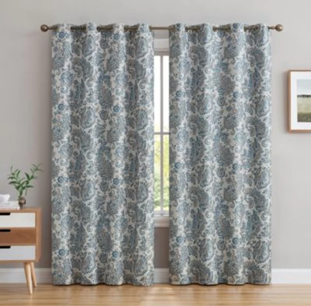 Ellis Vintage Stylish Medium Scale Printed Vine Pattern 1.5" Rod Pocket Tailored Swag 56"x36" Azure