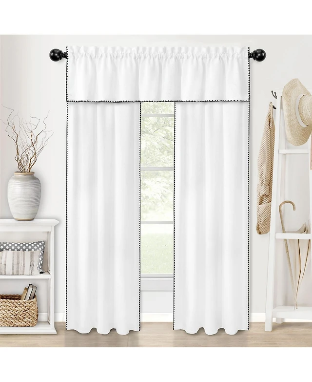 Ellis Intricate Brush Fringe Sewn on Inside Edge and Bottom 1.5" Rod Pocket Tailored Pair 80"x72" W/Ties White