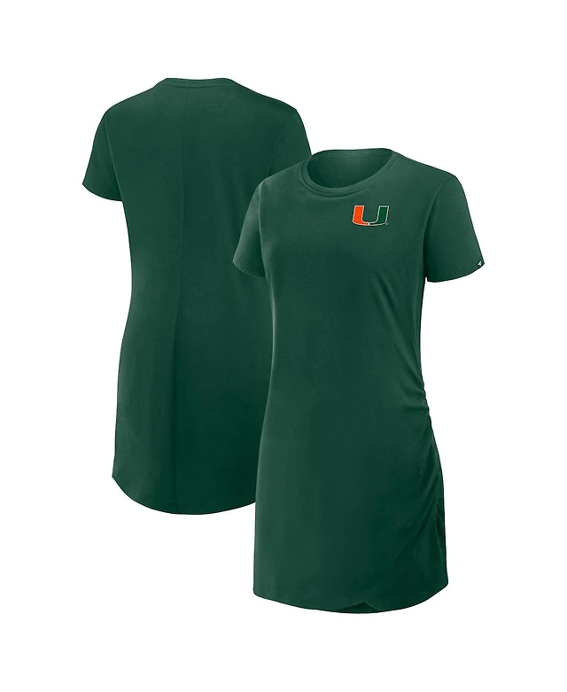 Fanatics Women's Green Miami Hurricanes Ruched Drape T-Shirt Dress