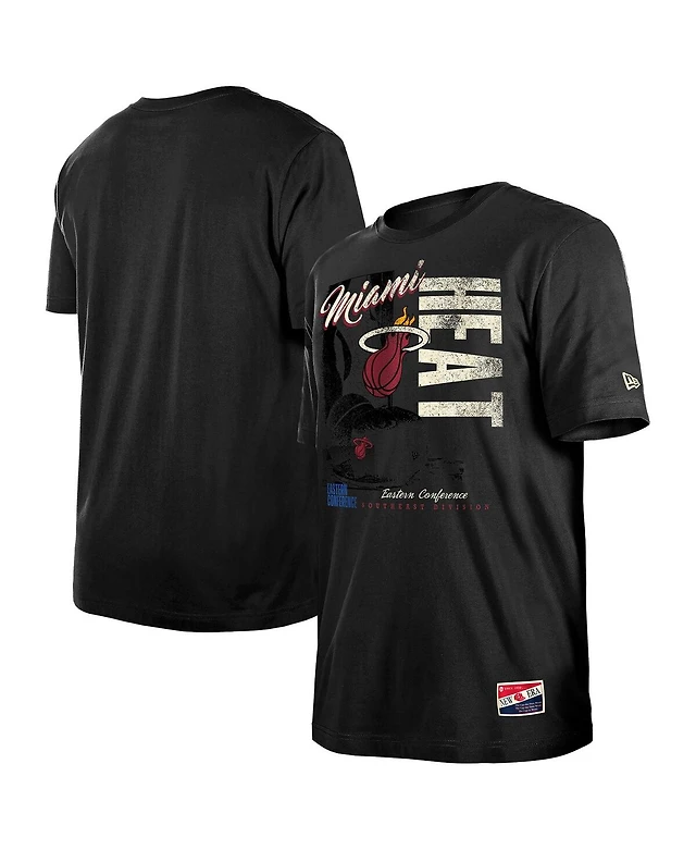 New Era Men's Black Miami Heat Distressed Throwback Vintage Color Pack T-Shirt