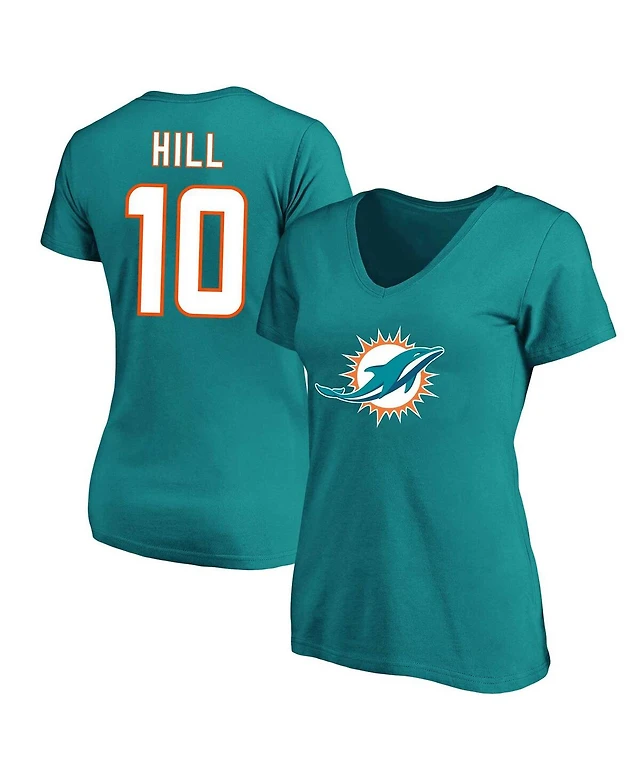 Women's Tyreek Hill Aqua Miami Dolphins Plus Fair Catch Name and Number V-Neck T-shirt
