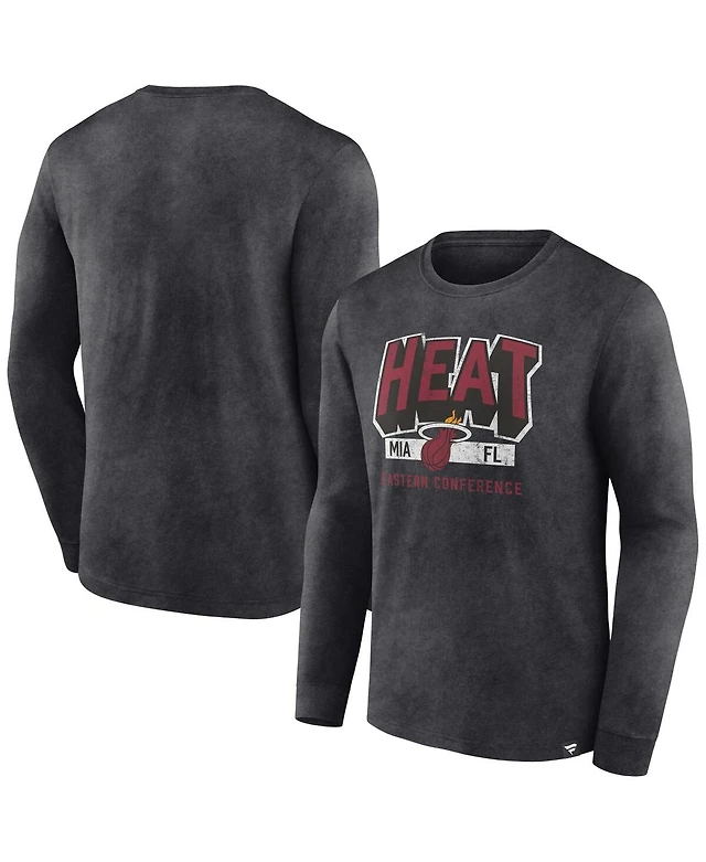 Men's Fanatics Heather Charcoal Distressed Miami Heat Front Court Press Snow Wash Long Sleeve T-shirt