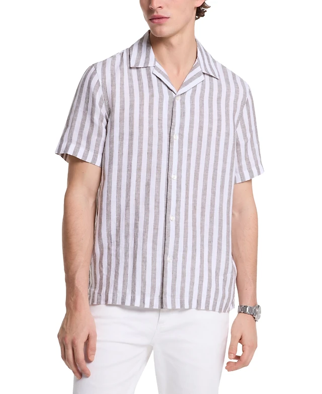 Michael Kors Men's Relaxed-Fit Linen Stripe Shirt