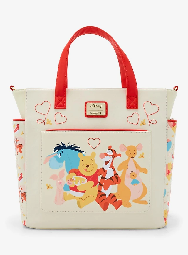 Loungefly Disney Winnie the Pooh Characters Hearts Convertible Tote Bag