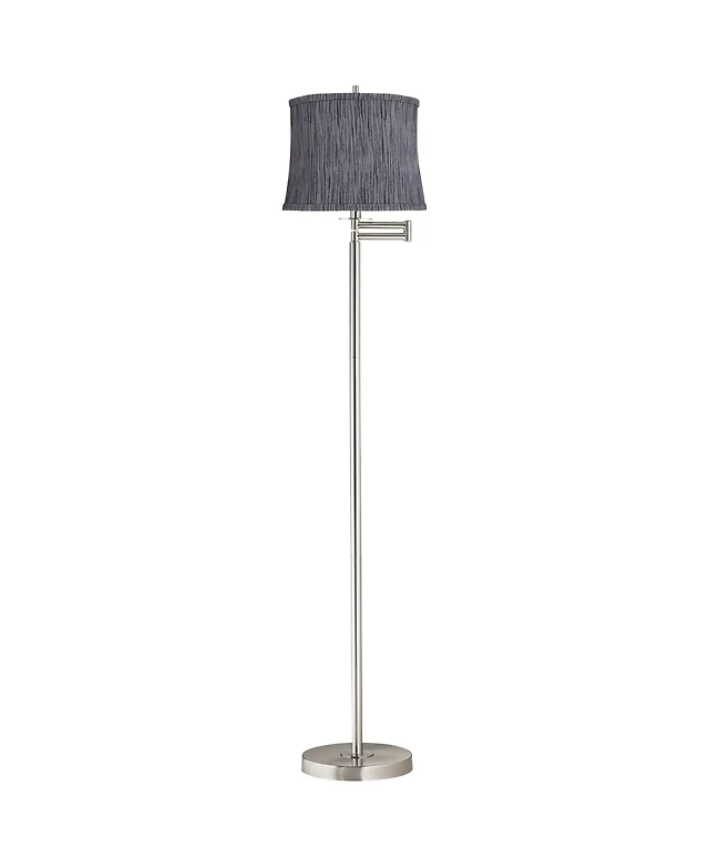 360 Lighting Modern Swing Arm Floor Lamp 60.5" Tall Brushed Nickel Hardback Drum Shade for Living Room Reading Bedroom Office