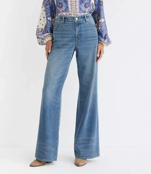 Billy T Women's Medium Wash Mid Rise Wide Flare Jeans